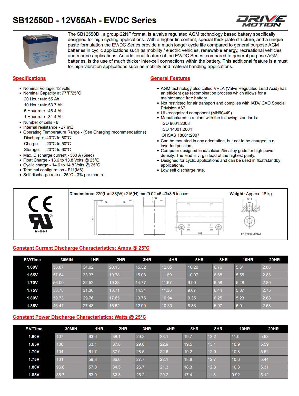 Capacité: 55 ampères/heure sur 20H