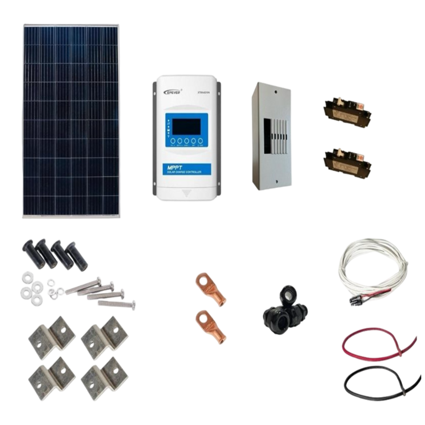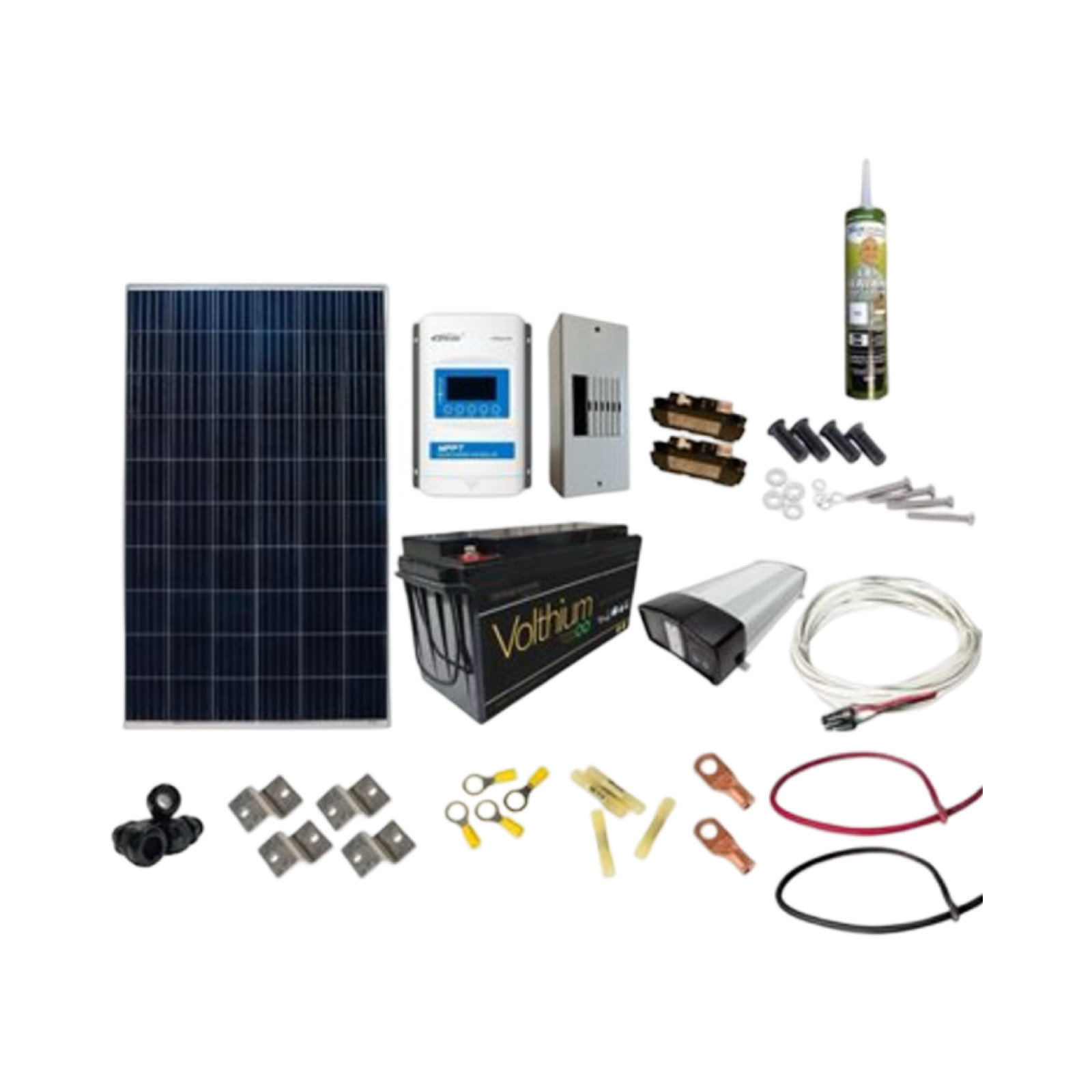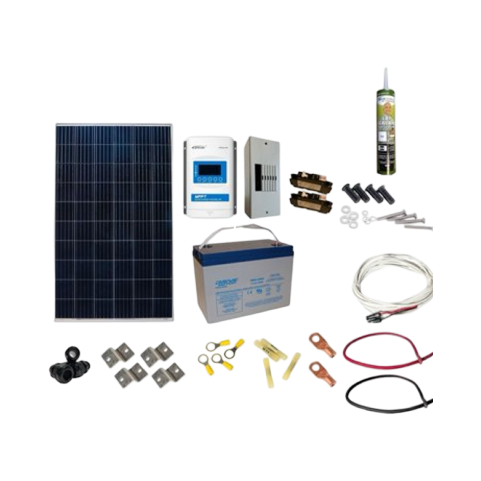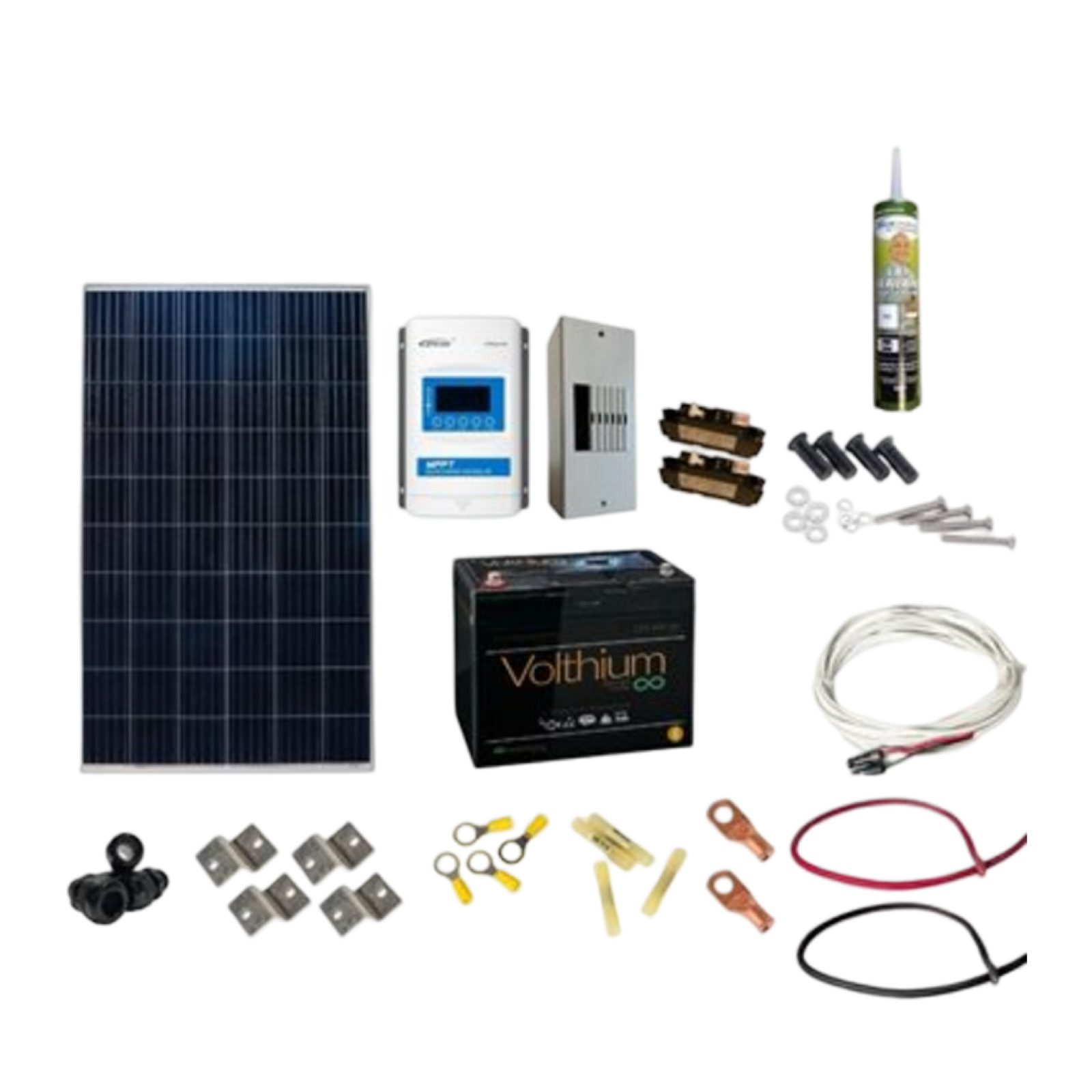 Ce kit a été conçu pour les propriétaires d'un véhicule motorisé qui voudraient profiter d’une grande autonomie en énergie. Que ce soit pour une escapade éclair de 2-3 jours, d’une semaine ou bien plus, il vous permet de partir sans casse-tête dans le confort de votre embarcation.