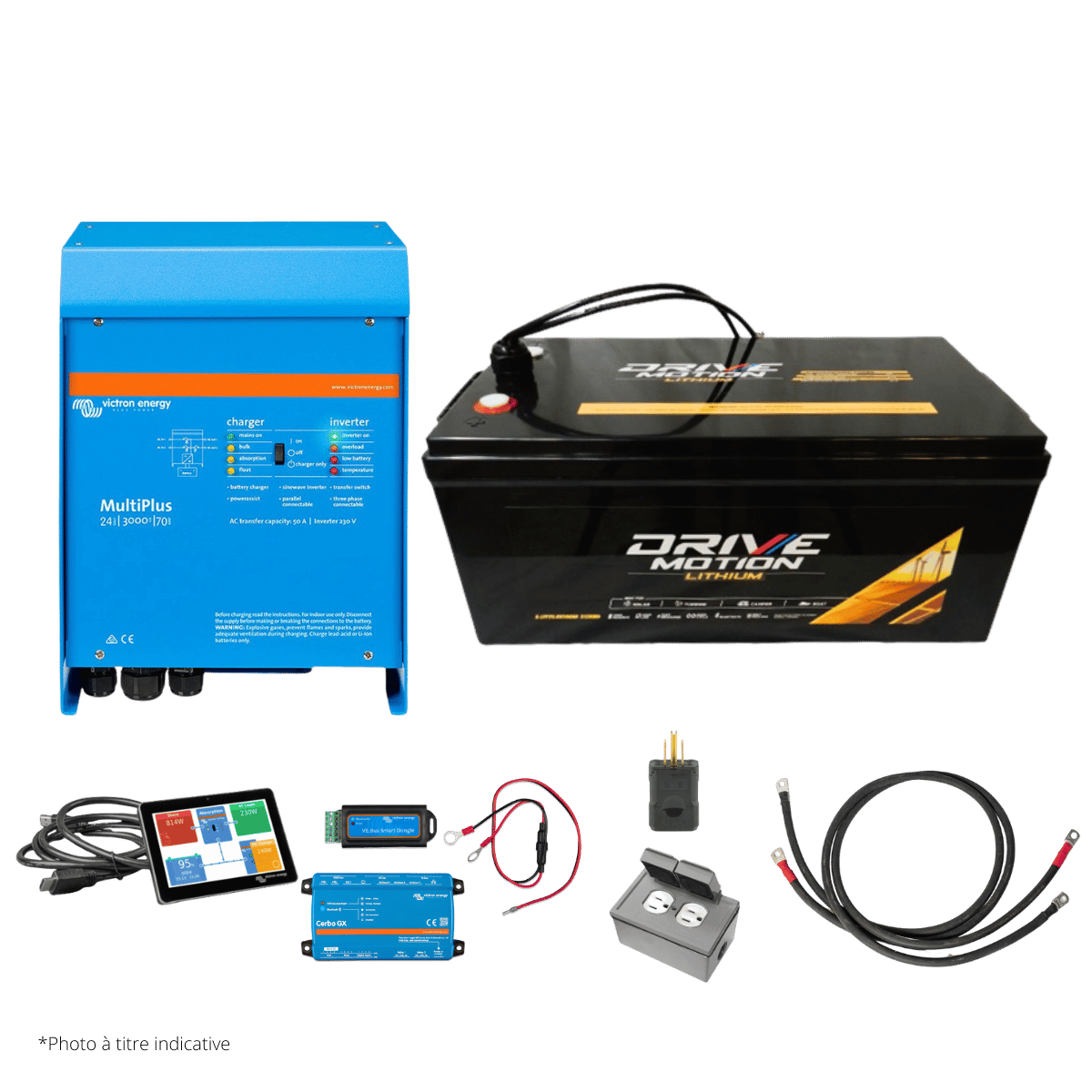 All the cables needed to connect the devices to each other. The maximum distance between the battery and the inverter is 5 feet.