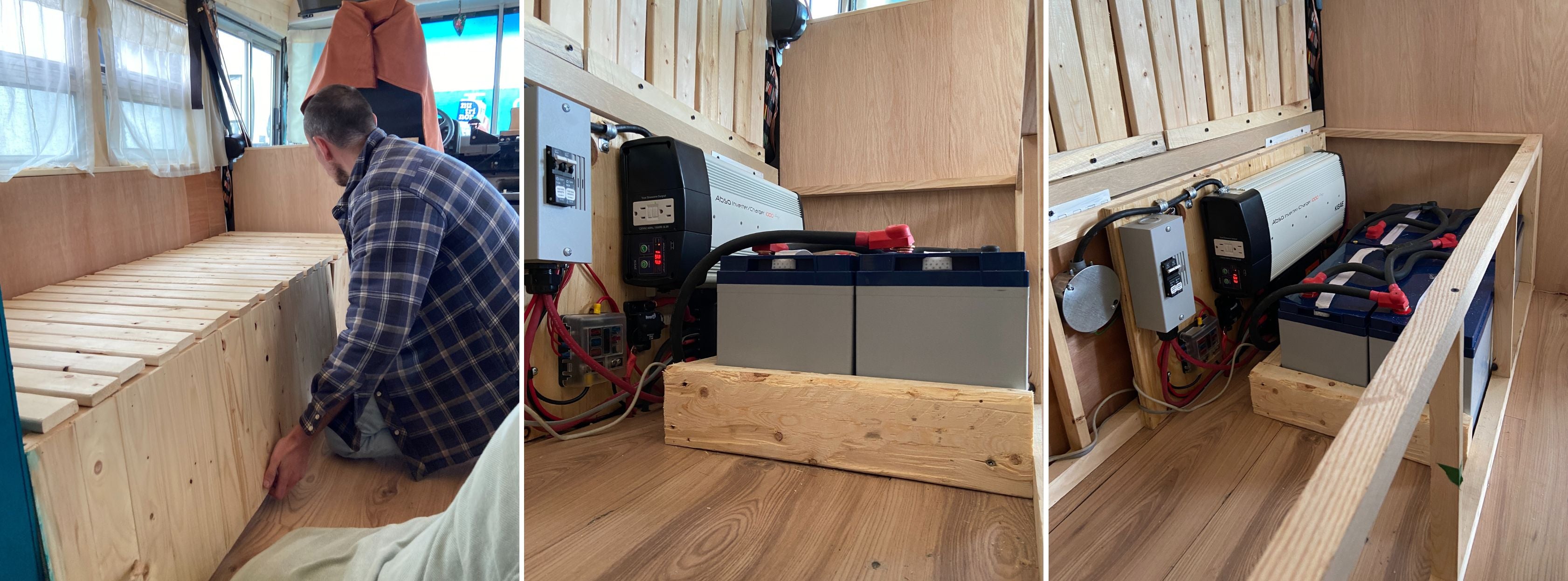 « On a tout fait dans le véhicule : les murs, l’isolation, les rideaux. Alexis et moi, on s’est partagé les tâches selon nos intérêts, poursuit Liana. Il ne nous manquait plus qu’à nous trouver une source d’énergie. On voulait pouvoir avoir assez de jus pour alimenter l’éclairage, recharger nos équipements de reportage (ordinateur et caméras), faire fonctionner un petit frigo et la pompe à eau . Gabriel et l’équipe d’installation ont su bien nous accueillir et nous installer ce qu’il nous fallait ».