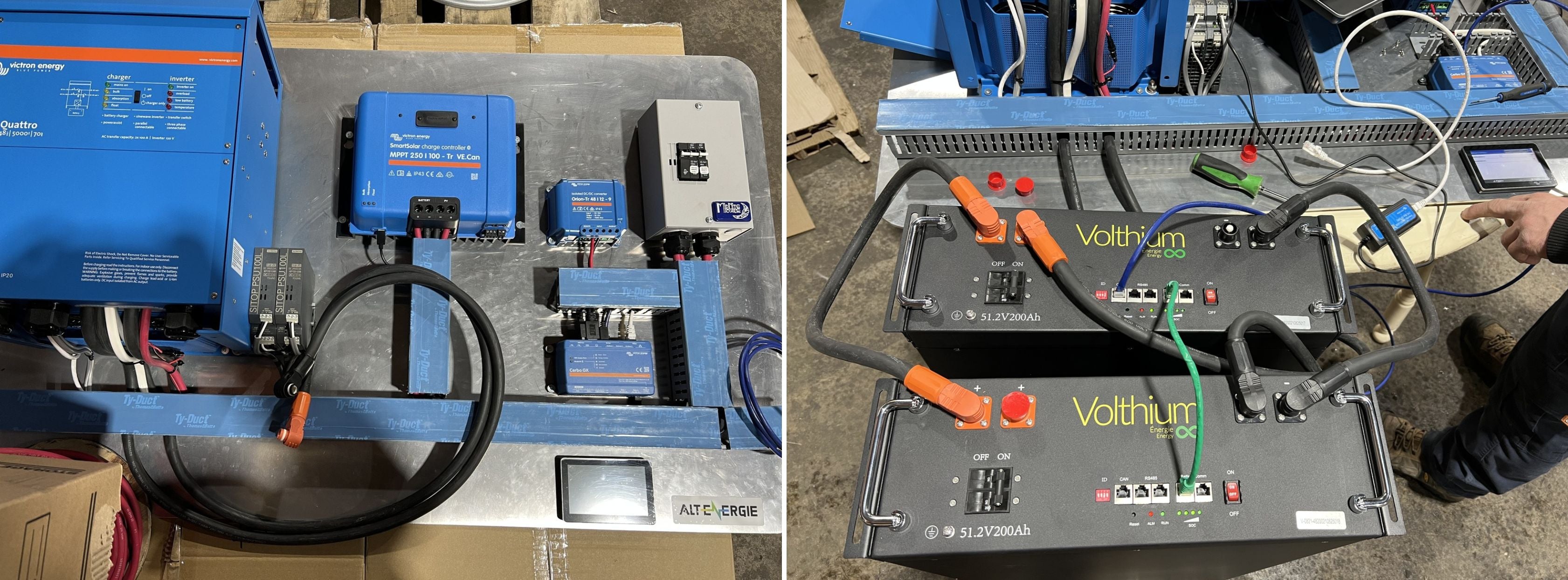 C’est en raison de la complexité du calcul des besoins et de l’harmonisation des composantes que je me suis tourné vers Alt-Énergie pour me proposer un système. L’ensemble "Tout inclus" correspondait à mes besoins tant au point de vue budget que des composantes. J’ai choisi l’option des batteries lithium pour la durabilité et la capacité de livrer plus de puissance. J’ai ensuite discuté à plusieurs reprises avec Gabriel afin de préciser l’offre.