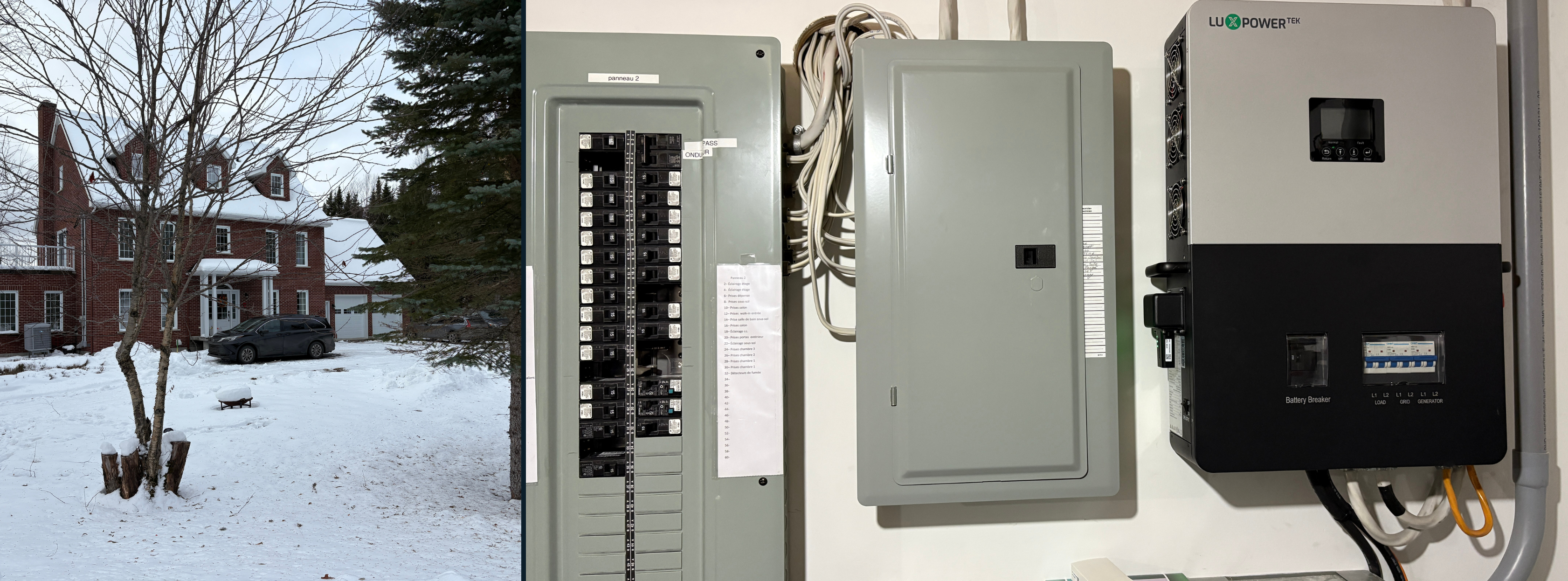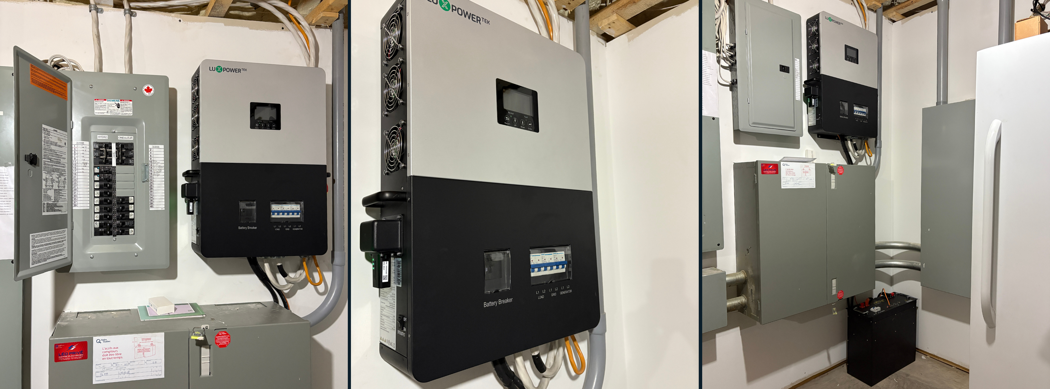 DESCRIPTION DU PROJET: Pannes fréquentes, secteur peu fréquenté et très boisé, Guillaume Tremblay cherchait une solution pour prendre le relais en cas de panne : « Je fais du télétravail, j’ai de jeunes enfants et j’habite loin, embarquer tout le monde dans l’auto le temps d’une panne n’est pas vraiment une option, j’étais donc à la recherche d’une solution qui pourrait prendre le relais de façon automatique, sans coupure de tension ».