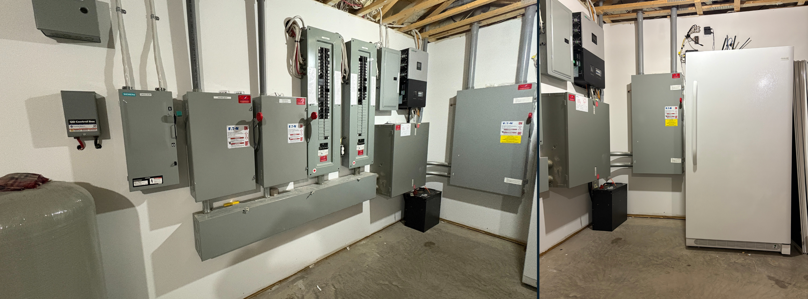 « L’autonomie de mon système est estimée à 72H, ce qui est amplement suffisant explique M Tremblay. Par contre, on a tout de même prévu une entrée électrique pour brancher une génératrice en cas de besoin.Pour le solaire, pour le moment, ce n’est pas dans les plans, à moins que les subventions d’Hydro-Québec ne nous fassent changer d’avis. Ça serait surprenant, mais on ne sait jamais ».