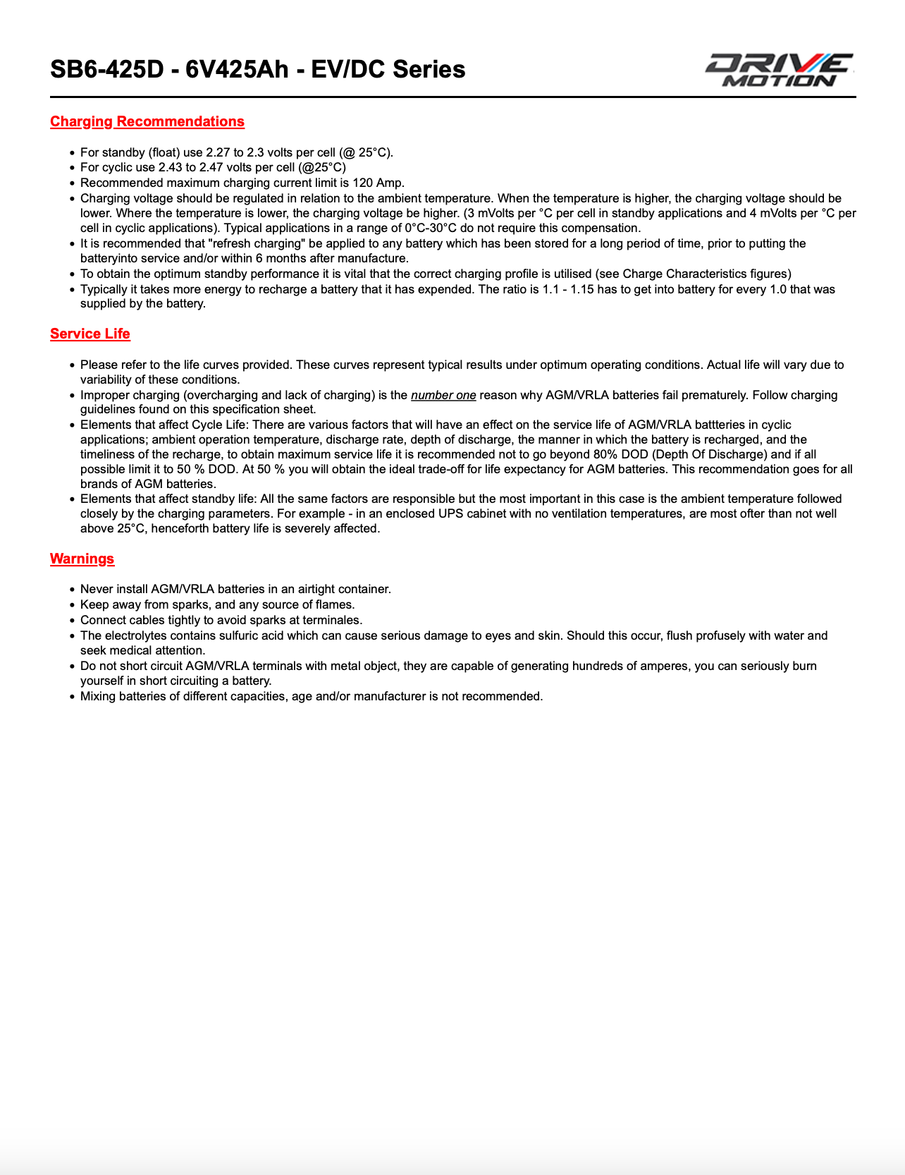 La SB6-425D est une batterie polyvalente conçue pour se charger et se décharger fréquement. Avec sa grande capacité de décharge et sa technologie anti-vibration, elle convient autant pour les installations fixes comme les systèmes solaires que pour les véhicules en mouvement comme les bateaux, VR, campeurs et les voitures électriques.