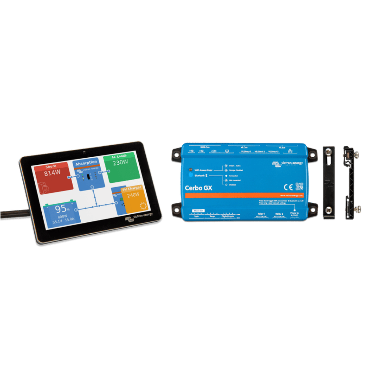 Contrôlez tous les appareils de votre système grâce au Cerbo GX de Victron.Sur place à l'aide de l'écran d'affichage GX Touch 50 ou à distance via le portail Victron Remote Management (VRM), surveillez et contrôlez tous les réglages de votre système.